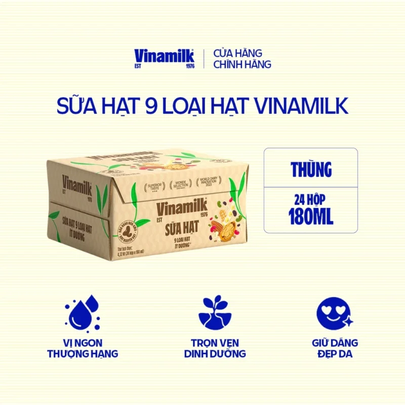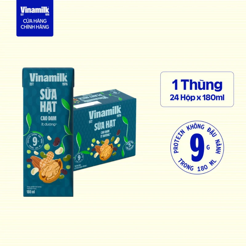 Thùng 24 hộp sữa hạt Cao Đạm ít đường Vinamilk – hộp 180ml