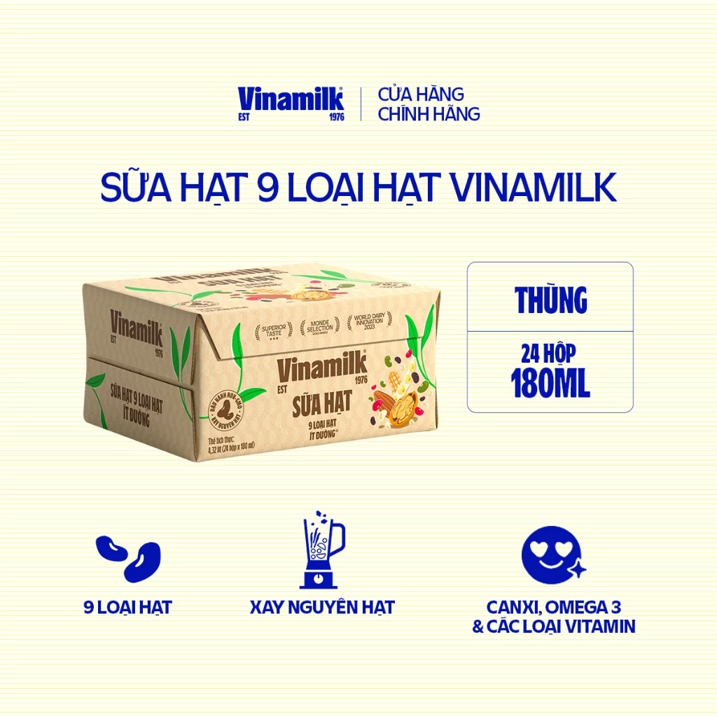 Thùng 24 hộp Sữa hạt 9 loại hạt Vinamilk ít đường – hộp 180ml